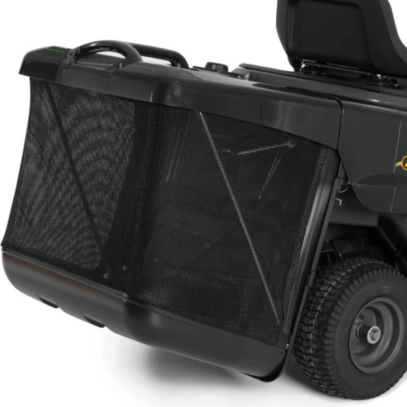 Optional kann der Traktor mit einem Mulchkit oder einem Seitenauswurf-Deflektor erweitert werden. Der Rasentraktor wird teilmontiert geliefert, Zubehör ist nicht im Lieferumfang enthalten.