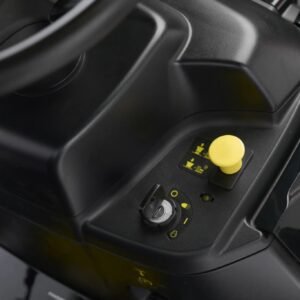 Ein Wasseranschluss erleichtert die Reinigung, und Scheinwerfer ermöglichen das Arbeiten auch bei Dämmerung. Der Traktor eignet sich für Flächen bis 4500 m² und kann mit Zubehör wie Mulchkit oder Schneeschild erweitert werden (Ladegerät optional).