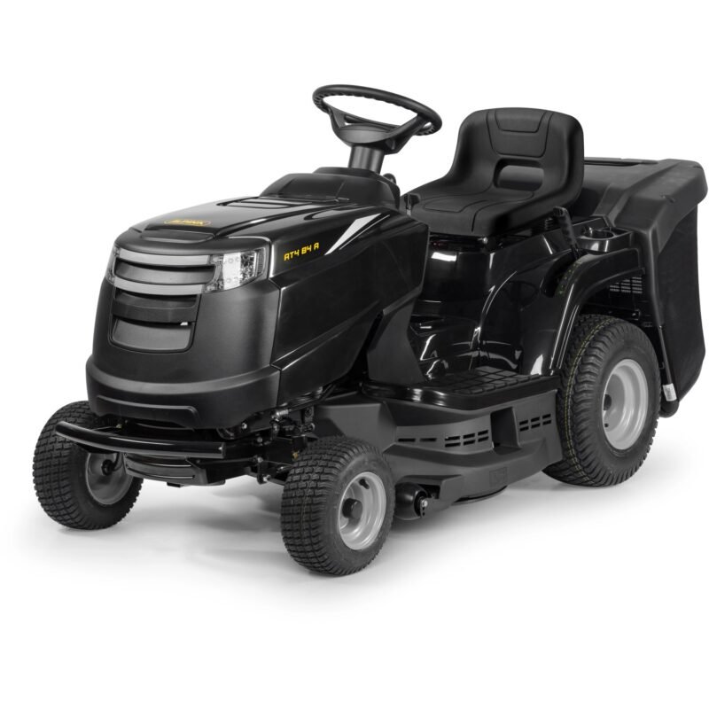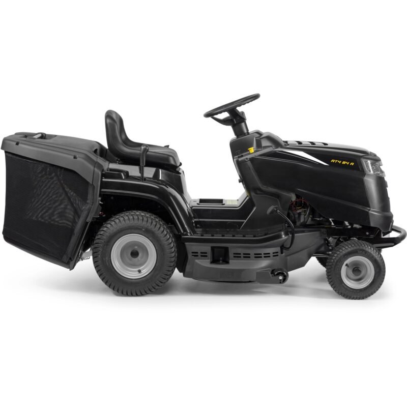 Der Alpina Rasentraktor AT4 84 A sorgt mit seinem kleinen Wendekreis und einer Geschwindigkeit von bis zu 9,7 km/h für Spaß bei der Rasenpflege. Angetrieben wird er von einem ST 350 Motor (Powered by Stiga) mit 5,8 kW/7,9 PS bei 2.400/min (Umdrehungen) und einem Hubraum von 352 cm³, der durch konstante Leistung und Langlebigkeit überzeugt. Das Mähwerk ist mit zwei gegenläufigen Doppelmessern ausgestattet und kann bequem über die elektromagnetische Kupplung zugeschaltet werden. 84 cm Schnittbreite stehen zur Verfügung, die sich in 7 Stufen von 25 mm bis 80 mm in ihrer Schnitthöhe regulieren lassen. Hierbei wird durch die Tasträder stets sichergestellt, dass ein Kontakt des Mähwerks mit dem Boden vermieden wird. Der AT4 84 A verfügt zudem über einen Wasseranschluss, der die Reinigung des Mähraumes erleichtert. Er ist für Rasenflächen von bis zu 3.000 m² geeignet. Durch die Scheinwerfer und das LED beleuchtete Armaturenbrett ist selbst das Mähen in der Dämmerung kein Problem. Der AT4 84 A kann durch zahlreiches Zubehör wie zum Beispiel ein Mulchkit, ein Prallblech für den Heckauswurf und ein Schneeschild für den Winterdienst erweitert werden. Die Lieferung erfolgt teilmontiert.