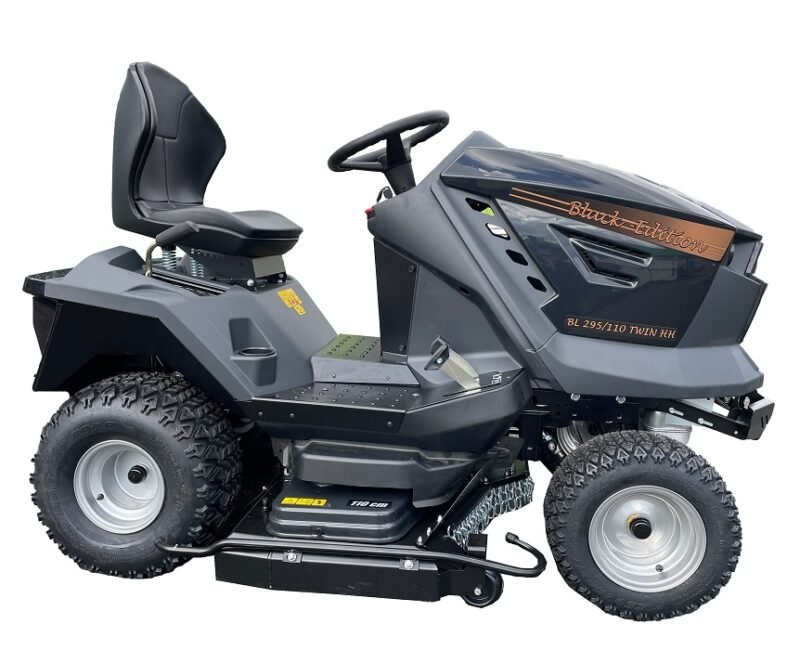 Der Hochgras Rasentraktor aus dem Hause EMAK, Black Edition BL 295/110 TWIN HH mit 110 cm Mähwerk und seinem 24 PS 2 Zylinder Motor. Das sehr stabil ausgelegte Mähwerk ist für die intensive Pflege bestens geeignet. Egal ob Hochgras oder regelmäßig gemähte Flächen, durch drei speziell geformte Kreuzmesser ist eine sehr gute Zerkleinerung und breitflächige Verteilung des…