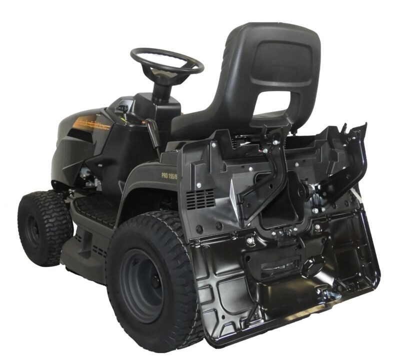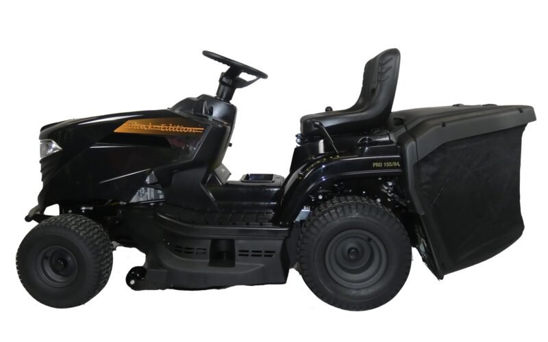 Der vielseitige Rasentraktor Black Edition PRO 155/84 mäht langes, wie auch kurzes Gras und sammelt im Herbst sogar Laub auf.