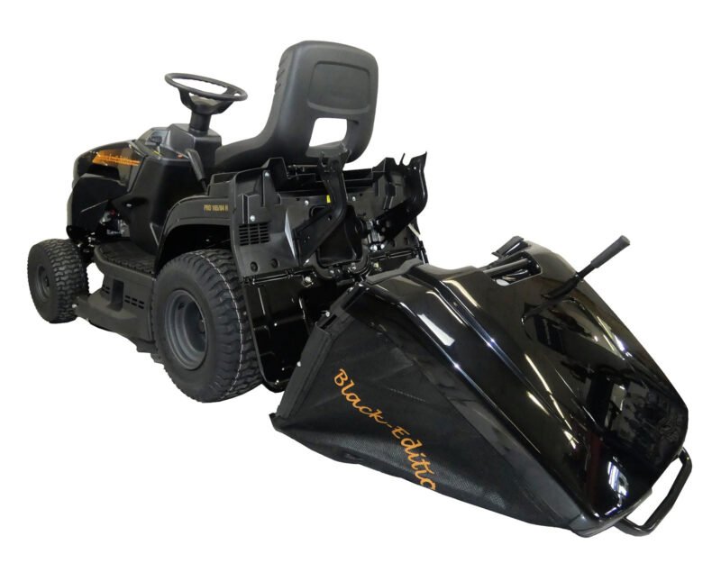 Der Black Edition® Aufsitzmäher PRO 165/84 H hat einen hinteren 240 Liter Fangkorb und kann auch mit dem