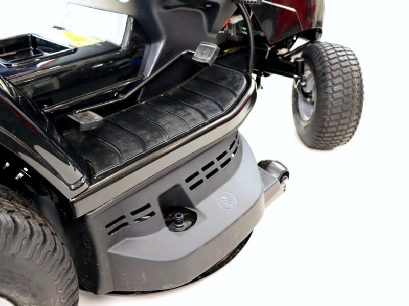 Leicht zugängliche Schnitthöhenverstellung für verbesserte Ergonomie. Das federgestützte Mähdeck erleichtert die Einstellung spürbar.