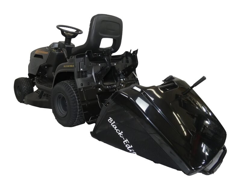 Der neue Black Edition Rasentraktor PRO 218/98 Twin H wird von einem STIGA 2-Zylinder-Viertaktmotor mit einer Motorleistung von 19,5 PS (14,5 kW) angetrieben und verfügt über einen pedalgesteuerten hydrostatischen Antrieb. Das 98 cm breite Mähdeck mit zwei Messern zeichnet sich durch sieben Schnitthöheneinstellungen von 25 bis 80 mm und eine elektromagnetische Messerkupplung aus. Grasschnitt kann im 240-Liter-Behälter gesammelt oder mit der Multiclip-Funktion, durch Einsetzen des optionalen Mulcheinsatzes, gemulcht werden. Zur Komfortausstattung des Black Edition PRO 218/98 Twin H gehören ein bequemem Sitz mit hoher Rückenlehne und die Doppelscheinwerfer. Mähen auch bei Rückwärtsfahrt möglich! Das Doppelmesser-Mähwerk des neuen Black Edtion Modell PRO 218/98 TWIN H Hydrostat ist mit zwei scharfen Messern ausgestattet, die bewährte Zwei-Messer-Schnitttechnik, welche die Schnitteigenschaften deutlich verbessert. Das stabile Mähwerk ist ebenso, wie der großzügige Auswurfkanal, aerodynamisch geformt, so dass das Schnittgut im gleichmäßigen Luftstrom durch den Kanal befördert wird und somit schnell und sauber den Grasfangkorb erreicht. Der kompakte Fangkorb des Black Edition PRO 218/98 TWIN H Hydrostat fasst 240 Liter und sorgt für beste Auffangergebnisse.