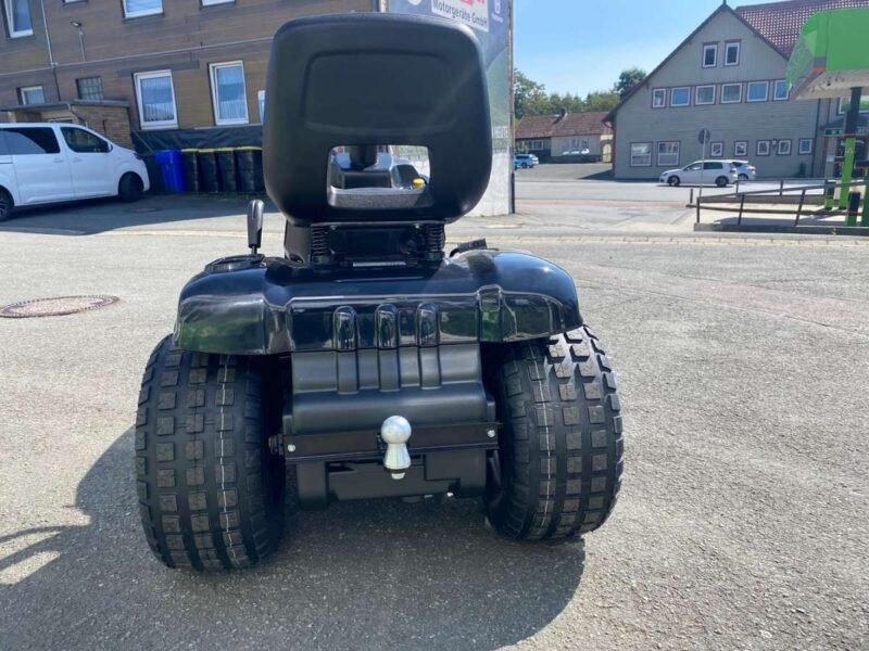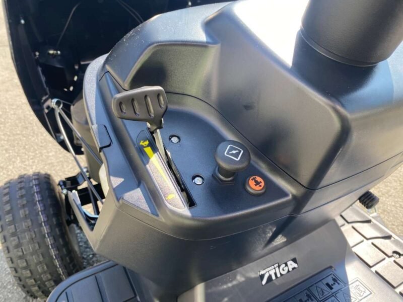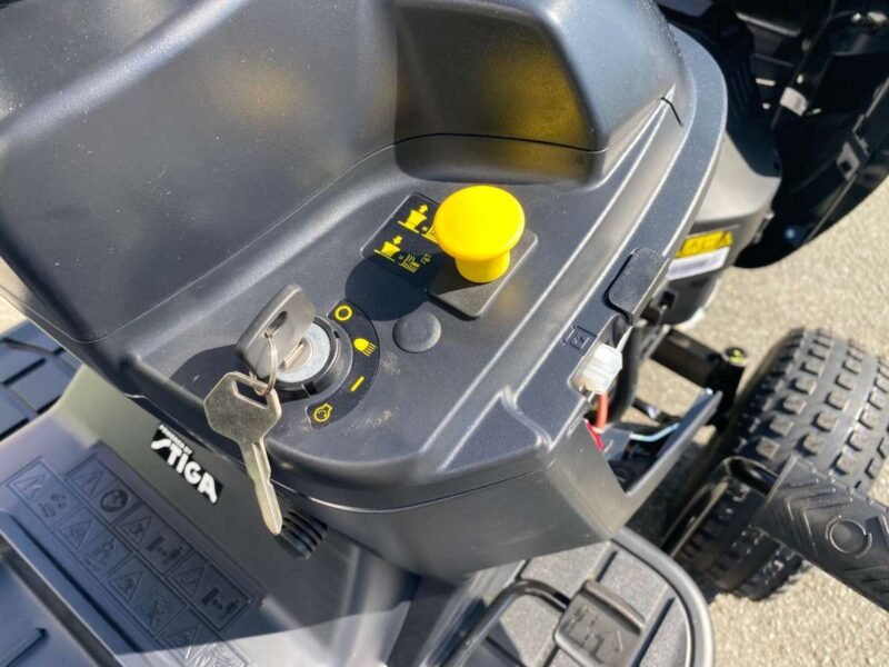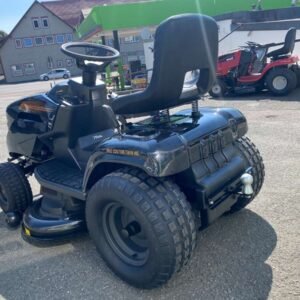 Das Hydrostatgetriebe, das über ein Fußpedal gesteuert wird, ermöglicht eine einfache und stufenlose Geschwindigkeitsregelung. Zudem verfügt das Modell über einen komfortablen Sitz und eine verstärkte Vorderachse aus Stahl.